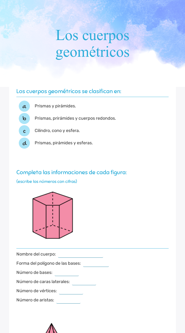 Los Cuerpos Geometricos Interactive Worksheet By Sara Labrador Wizer Me