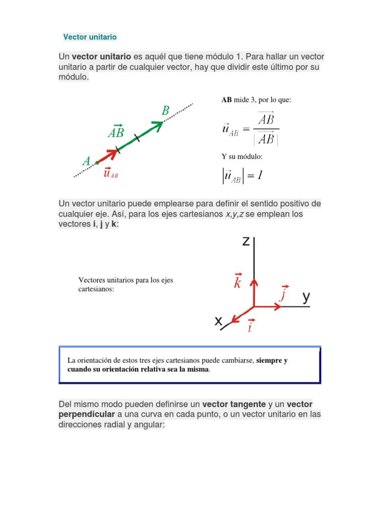 Un vector unitario es aquél que tiene módulo 1. Así para los ejes cartesianos xyz se emplean. By Fanny ZapataAug 04 20206 mins to read.